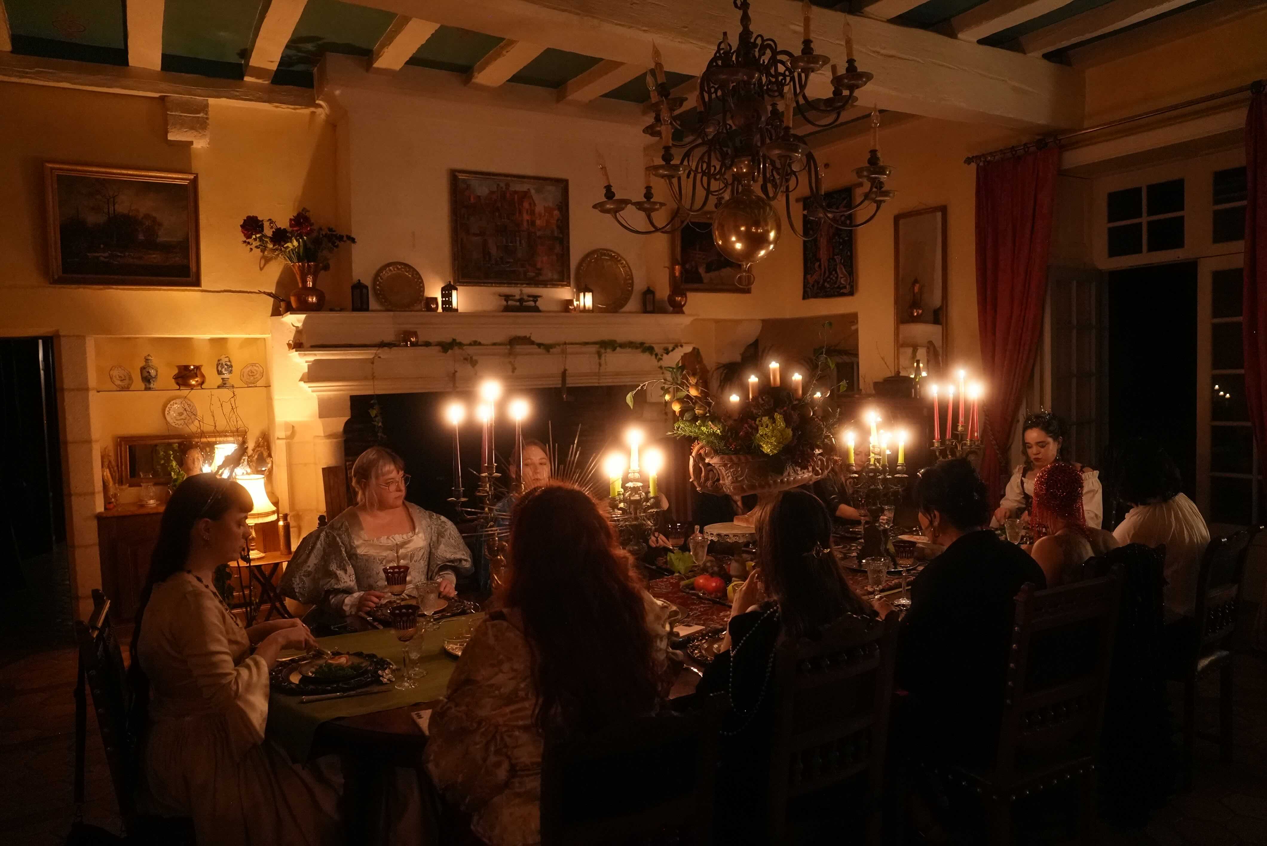 The photoshoot themes come to life at dusk. You are invited to bonfires under the stars, escapades through the labyrinth, cinema screenings by candlelight, and revelries in the forest.