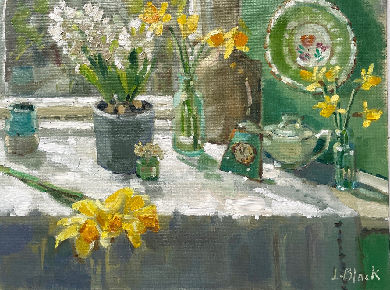 As an accomplished artist deeply rooted in the traditions of still life and plein air painting, Lizzie Black lives and works in the picturesque coastal village of Mousehole, Cornwall. Drawing inspiration from her surroundings, she creates compositions that celebrate the beauty found in everyday moments.